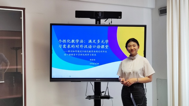 第三期分享人是孔院国际中文教师陈佳佳,主题为《个性化教学法:满足多元学习需求的对外汉语口语课堂》,她结合孔院高级口语课和商务中文的教学经历与教师们一起探讨了传统教学模式与个性化教学需求的差距,针对孔院学员提出了“分层教学”方法,强调关注学生个体差异,满足不同学员的中文学习需求。