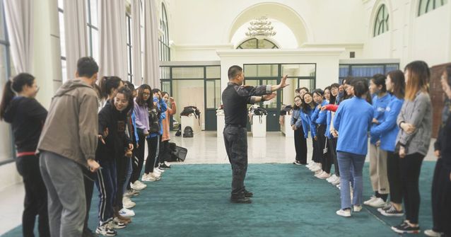 2019年 3 月 30 日上午,安全教育和拓展训练讲座在上外松江校区四教楼进行。在教官的带领下,学员进行了安全教育实操板块的学习。课程分为安全防范意识、灾害及应急事件处理、安全防范基本技能、紧急救护、绑架应对技能、旅行交通安全、监视行为识别、防卫与反击和突发事件模拟演练等多个项目。