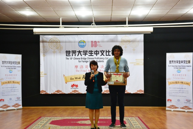 当地时间2019年4月21日,第十八届“汉语桥”世界大学生中文比赛摩洛哥赛区决赛在卡萨布兰卡哈桑二世大学艾因谢高文学院礼堂圆满落幕。来自哈桑二世大学孔子学院,同时也是艾因谢高文学院中文专业的的侯赛因·兹莱迪(中文名陈安忆)最终获得特等奖,将代表摩洛哥赛区赴中国参加汉语桥总决赛。