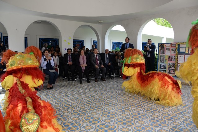 孔院中方院长孔令涛首先致辞,欢迎摩洛哥小朋友参与到汉语学习中,并表示将创造更多机会让小朋友们了解中国文化。在文化表演环节,身着中国红服装的志愿者们表演舞狮、腰鼓和功夫扇等节目,给观众留下了深刻的印象。葫芦丝与竹笛演奏让观众认识了中国传统乐器,并欣赏到了中国传统音乐魅力。摩洛哥小朋友的中文歌曲《数鸭子》节目展现出他们学习汉语的极高热情,吸引了所有在场观众的眼球。
