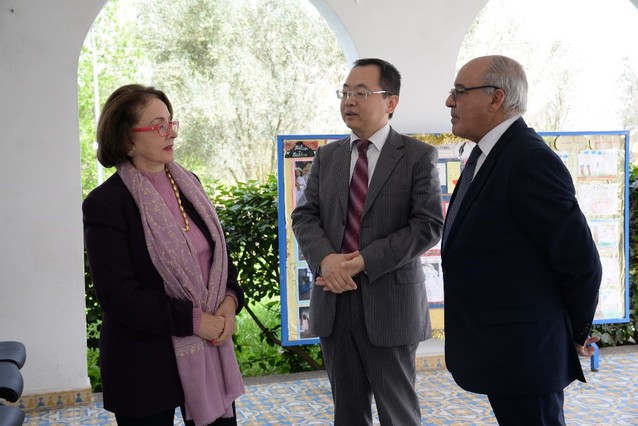 布斯库拉小学是BMCE银行教育基金会捐建的一所希望小学,哈桑二世大学孔子学院于2014年开始在该小学设立汉语教学点,现在已面向该校4-6年级全体学生授课。BMCE银行教育基金会理事长本杰龙夫人带领理事会高级成员出席孔院“文化大篷车”活动。