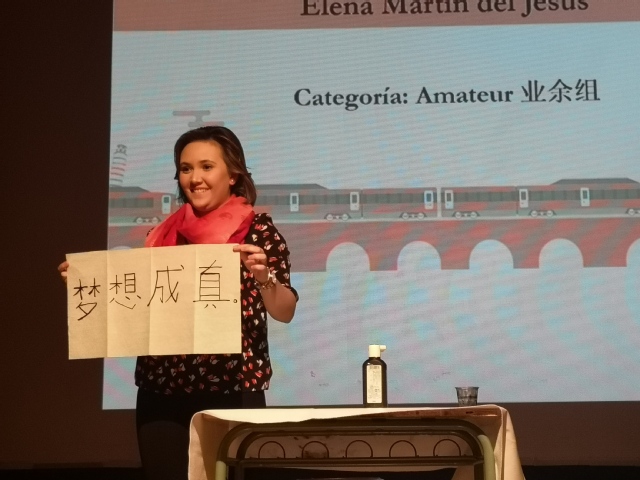 “汉语桥”比赛是由孔子学院总部主办的大型国际汉语比赛,每年举办一次,符合条件的汉语学习者均可报名参加。西班牙马德里孔院的教师在课外为学生辅导,积极备战。此次比赛中,展示书法作品的艾莲娜(Elena)引起了评委们的关注。她汉语起步时间较晚,但经过3个月刻苦学习,在比赛中她已经能用标准的发音,流利地进行汉语演讲。艾莲娜感谢汉语丰富了她的生活,让她能“学东西各异,看大江南北”。