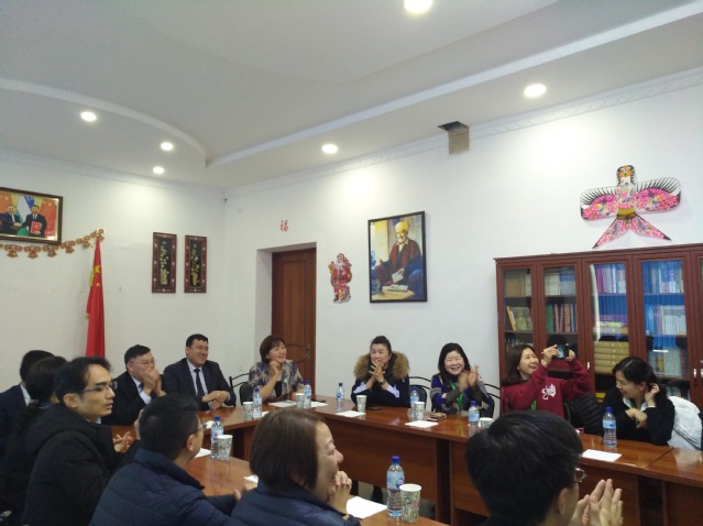 在座谈会上,撒外副校长为考察团介绍了撒外的基本情况,臧颖院长介绍了孔子学院成立四年来的工作情况,使考察团成员对孔院在本地的发展有了大致了解。潘永强校长也介绍了此次考察的目的和任务,希望通过对“一带一路“沿线国家中资企业和孔子学院等社会机构的考察、参访和交流活动,让校长和教师们深入了解所在国的商业环境和文化环境,开拓国际视野,提升未来的教学能力和辅导能力。