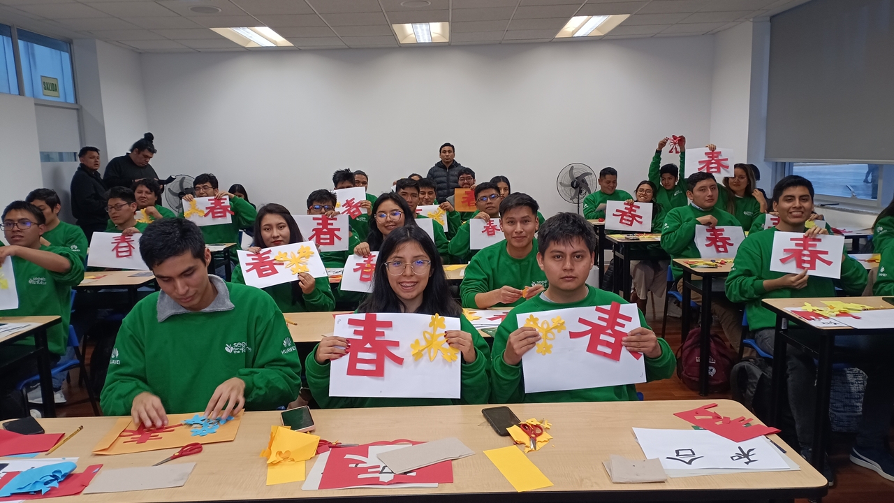 当地时间2024年8月14日,秘鲁天主教大学孔子学院受华为(秘鲁)公司邀请,为其“未来种子”计划项目学员提供中国文化讲座及文化体验活动。今年华为公司在秘鲁遴选了40名优秀大学生参加为期两天的“未来种子”培训项目。为增加当地学员对中国文化的了解,孔院设置了中国文化讲座与体验活动。中华人民共和国驻秘鲁大使宋扬携夫人出席活动并致辞。