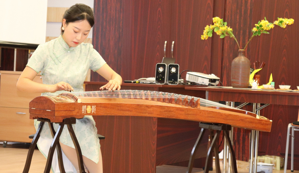 国际中文教育志愿者王晶、韩欣浥合作带来国风表演《兰亭序》,器乐悠扬、舞姿柔美,观众们纷纷拍照录像。