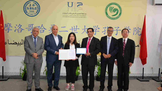 当地时间2019年6月14日,摩洛哥王国哈桑二世大学在孔子学院举办了2018-2019年度离任汉语教师和志愿者欢送会暨“中国文化使者”荣誉证书颁授仪式,授予即将离任的1位汉语教师和13位志愿者“中国文化使者”这一荣誉称号。