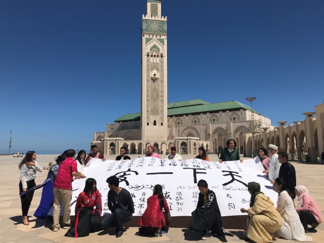 当地时间2019年6月18日,湖南卫视第十八届世界大学生中文比赛“汉字书写大行为”的拍摄活动在摩洛哥哈桑二世大学孔子学院师生的配合下圆满结束。