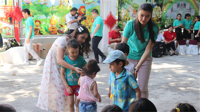 当地时间2019年6月19日,撒马尔罕国立外国语学院孔子学院师生在中外方院长的带领下慰问本地第60残障幼儿园,受到园长、保育员和孩子们的热情欢迎。