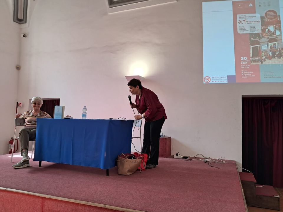 当地时间2024年9月30日 ,意大利那不勒斯东方大学孔子学院在那不勒斯历史悠久的圣塞韦罗潘迪诺教堂(Chiesa di San Severo al Pendino)举办了主题为“天下:透过中国看世界”的“孔子学院日”文化讲座活动,吸引了众多对中国文化和历史感兴趣的当地民众参与。本次活动的主讲嘉宾是来自意大利米兰国立大学孔子学院意方院长、著名汉学家兰珊德(Alessandra Lavagnino)教授。那不勒斯东方大学东亚宗教与哲学研究副教授Chiara Ghidini、孔子学院意方院长万丽雅(Valeria Varriano)和中方院长吴珺如出席了本次活动。