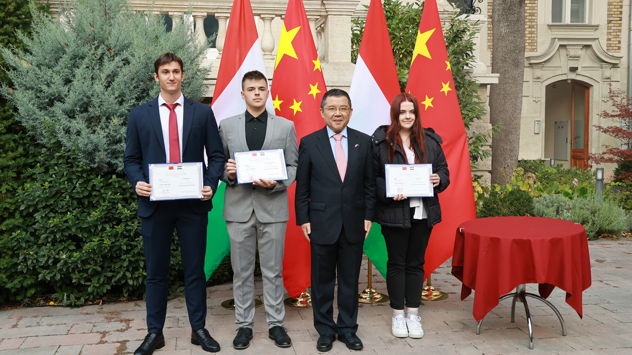 中华人民共和国驻匈牙利特命全权大使龚韬在致辞中向获奖的青年学生表示祝贺,指出“中国大使奖学金”自2016年设立以来,不仅激发了匈牙利青少年学习中文和中国文化的热情,更为两国关系发展播下了希望之种。随着中匈关系发展,未来需要更多掌握中文、了解中国的人才,匈牙利的中文学习者将迎来更加广阔的人生舞台。希望大家学业不断进步,为中匈友好与合作事业的发展贡献力量。