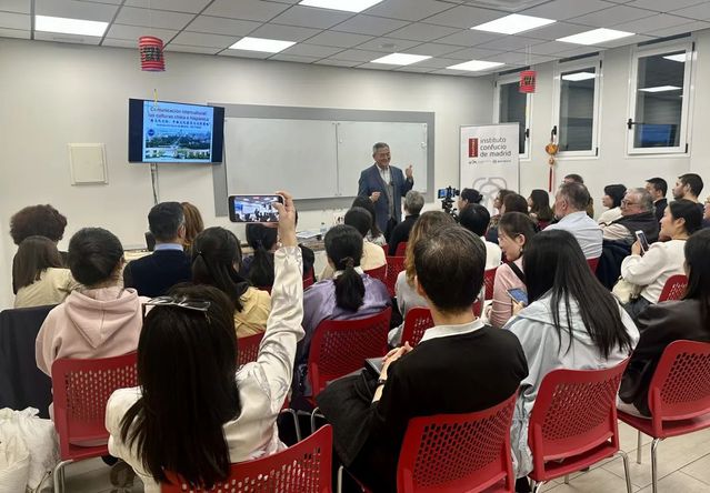 当地时间2024年10月24日,西班牙马德里孔子学院邀请上海外国语大学陆经生教授在孔子学院开展了题为“跨文化交际:中西文化差异与交际策略”的文化讲座,吸引了众多当地文化爱好者与学者的热情参与。现场气氛热烈,座无虚席。