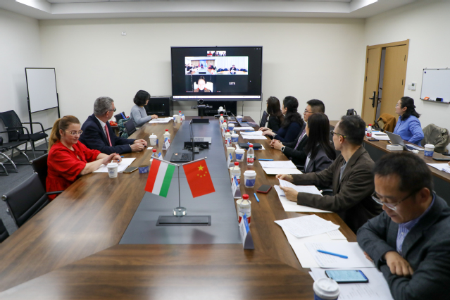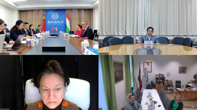 赛格德大学国际事务处处长托马斯·贝内(Tamas Bene)、上外对外合作交流处副处长麻桑、俄罗斯东欧中亚学院副院长齐昕、中文学院/国际文化交流学院副院长鹿钦佞出席了会议。