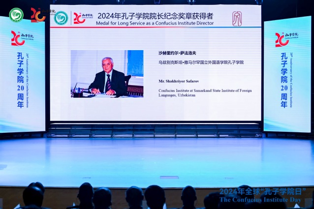 ·上外合作共建乌兹别克斯坦撒马尔罕国立外国语学院孔子学院乌方院长沙赫里约尔•萨法洛夫(Shakhriyor Safarov)荣获“孔子学院院长纪念奖章”。