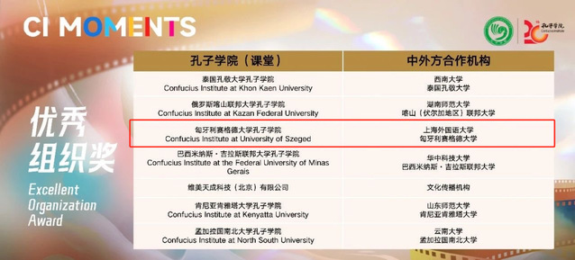 ·中国国际中文教育基金会主办的第四届“最·孔院”全球短视频征集活动中,上外合作共建孔子学院共斩获12个奖项,其中二等奖2项、三等奖6项、优秀组织奖4项。