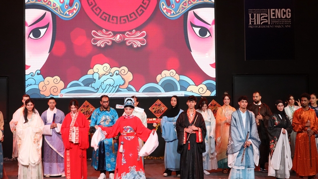 整场晚会节目形式多样,亮点纷呈。孔子学院朗诵团深情演绎的《古诗里的中国》,带领观众穿越时空,感受中国诗词的独特魅力;舞蹈团《刀马旦》则将传统戏曲元素与现代编排相结合,演员们利落的动作将传统戏曲中的女性英姿表现得淋漓尽致;而舞蹈《天宫霓裳》以婀娜舞姿展现了东方美学的浪漫与灵动,仿佛将观众带入天宫仙境;孔子学院太极队的《拳风扇影》将太极扇与太极拳相结合,动作或柔和缓慢,或迅猛有力,扇骨的开合声与拳法动作相得益彰,展现了中华武术的刚柔并济;服装秀《锦绣千年》无疑是晚会的重头戏。孔子学院的学生身穿华美汉服,踏着典雅的音乐依次走上舞台,展现了中国传统服饰的千年风韵,外国学生以自信从容的表现诠释了中国传统服饰的魅力,将晚会气氛推向高潮;歌曲表演《仰望星空》《年少的你啊》《如愿》《dirou niyya》和孔院乐器社带来的《笛韵筝音》,让中摩音乐完美结合,点燃了现场观众的热情。