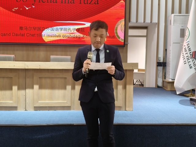 当地时间2025年2月26日,撒马尔罕国立外国语学院孔子学院(以下简称“撒外孔院”)举办了2025年“留学中国”奖学金宣讲会,活动共吸引了当地本土中文教师及大中学生70余人参加。撒外孔院中方院长项伟、撒外中文系教研室主任李庆庆及撒马尔罕国际工业大学中国电力学院中方副院长李兴灿出席活动。本期宣讲会由撒外孔院国际中文教师吴晓焕主持。