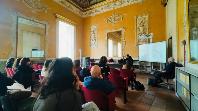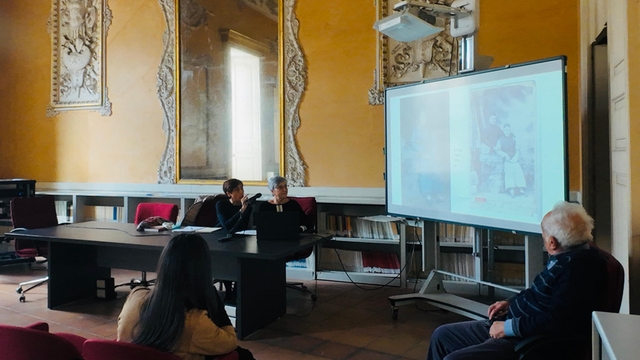 当地时间2025年3月7日,意大利那不勒斯东方大学孔子学院举办了本年度首场“孔子俱乐部”活动,主题围绕《阿戈斯蒂诺·比亚吉与他的<神曲>中文翻译》(Agostino Biagi e la sua traduzione in cinese della Divina Commedia)一书展开讨论。本次活动邀请了北京外国语大学教授王军(线上)、那不勒斯东方大学教授多娜黛拉·朱达(Donatella Guida)、孔子学院外方院长万丽雅(Valeria Varriano)以及该书的作者之一马拉·卡洛奇(Mara Carocci)出席,共同探讨但丁经典著作的跨文化传播与翻译实践。